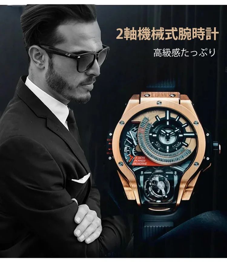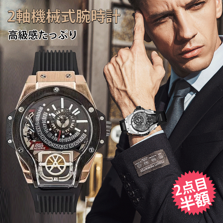 メンズ2軸機械式腕時計