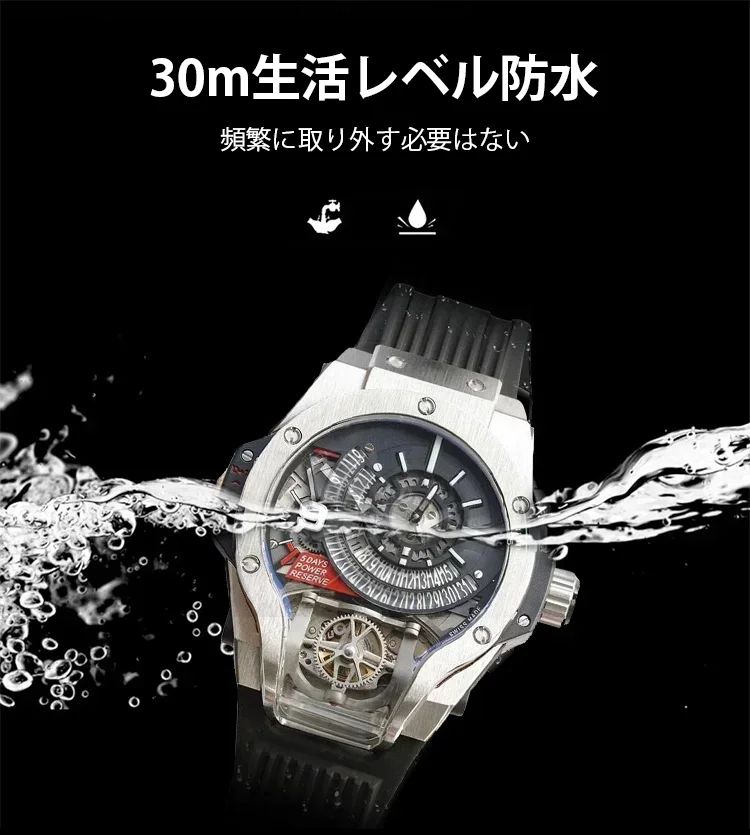 2軸、機械式、30m防水、夜光指針、両開きバックル